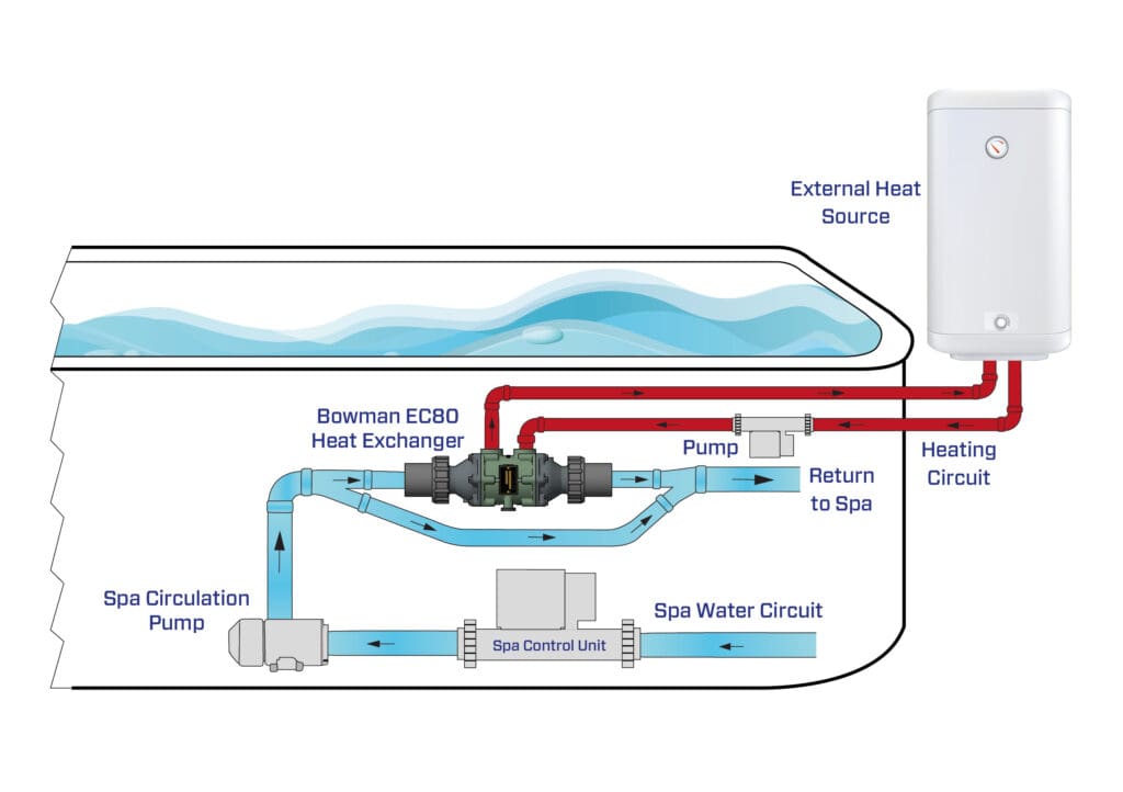 Deutlich schnellere Aufheizzeiten und reduzierte Energiekosten. Warum die Verwendung einer externen Wärmequelle, verbunden mit einem Bowman-Wärmetauscher, die Whirlpool-Heizung revolutioniert.