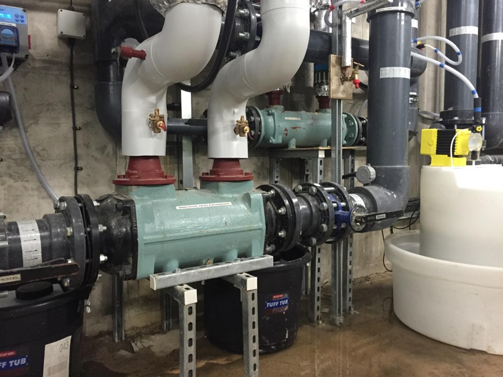 Gas boilers are used to heat the three pools via two Bowman heat exchangers – a PK190, the largest swimming pool unit Bowman make, which is suitable for pool capacities up to 1,500 mᵌ (or 330,000 gallons), and transfers up to 1,055 kW of heat from 82 ⁰C boiler water, plus a slightly smaller GK190, which has a pool capacity of up to 660 mᵌ (145,000 gallons) transferring 556 kW of heat from 82 ⁰C boiler water.