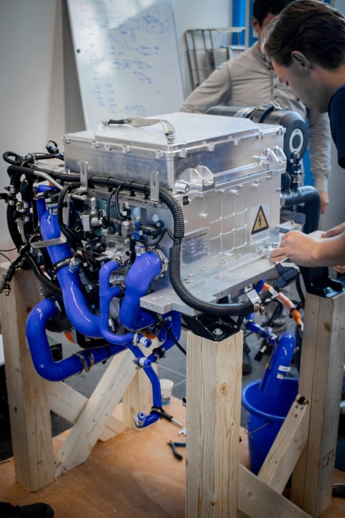 From there, hydrogen is transferred to a fuel cell, where it is mixed with oxygen, generating electricity to power the boat – the only by-product being water.